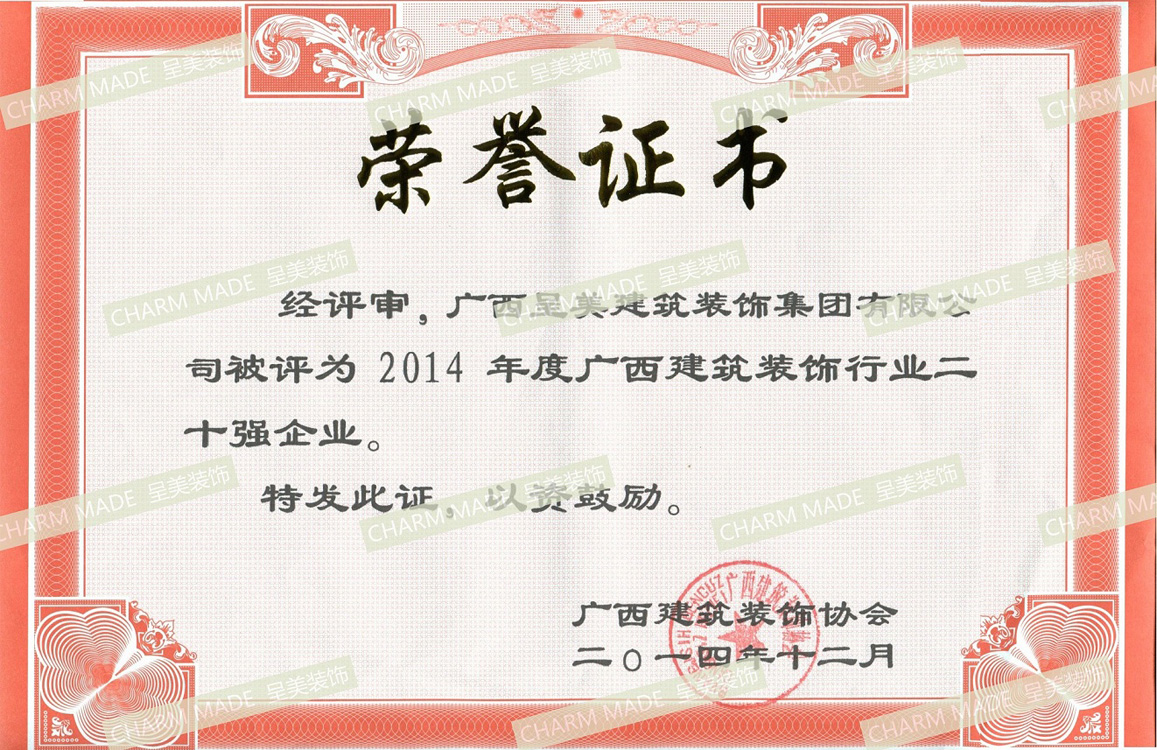 2014年度 廣西建筑裝飾行業(yè)二十強企業(yè)